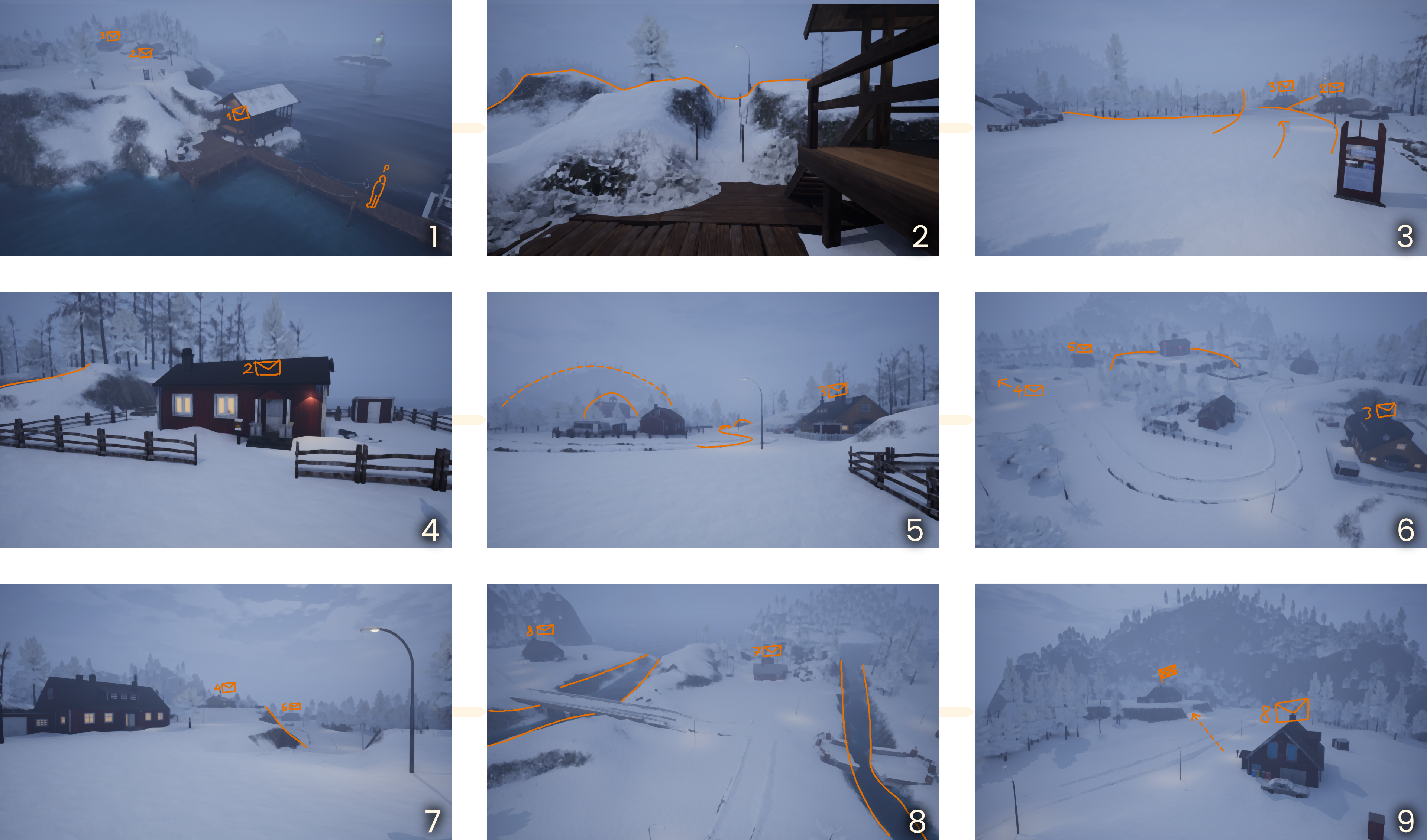 Developed the world of Dear Mailman, a fictional winter island inspired by Swedish landscapes.